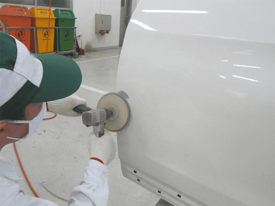 – Mài bốc sơn: Sử dụng nhám P80 bóc hết sơn những vùng bị trầy sướt, có tác động của đe búa.
