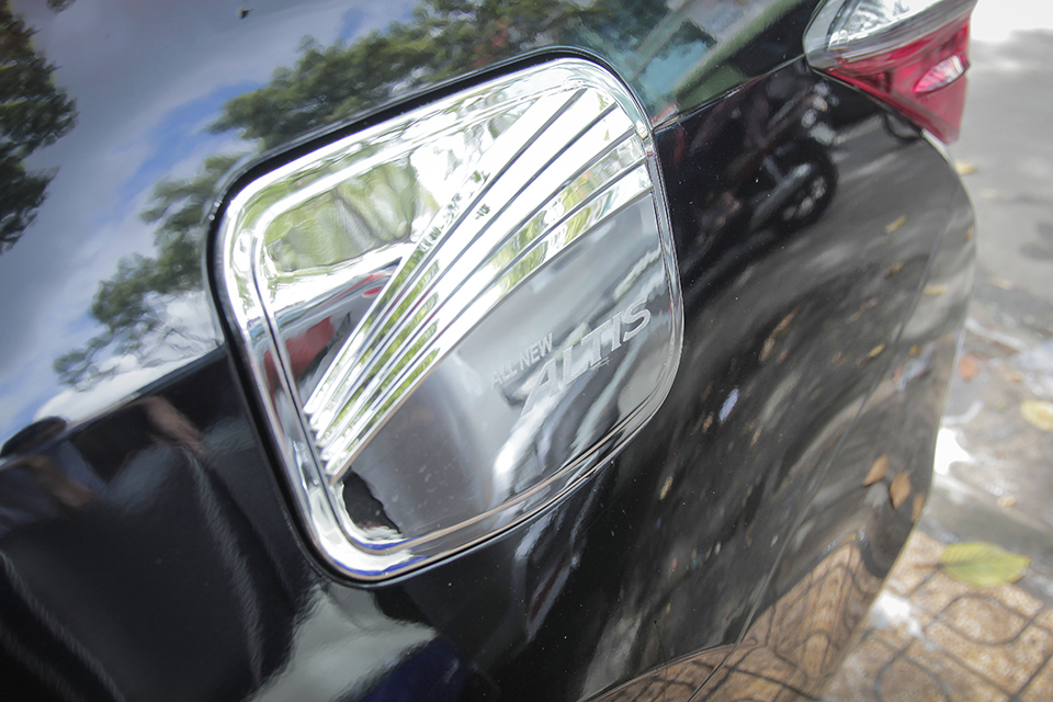 Chữ Altis nổi bật kết hợp với họa tiết 3D ấn tượng trên phần nắp bình xăng, giúp trang trí, tăng tính thẩm mỹ và tạo điểm nhấn. Ngoài tính năng trang trí, ốp nắp bình xăng còn hạn chế việc trầy xước sơn xung quanh nắp xăng xe Altis.